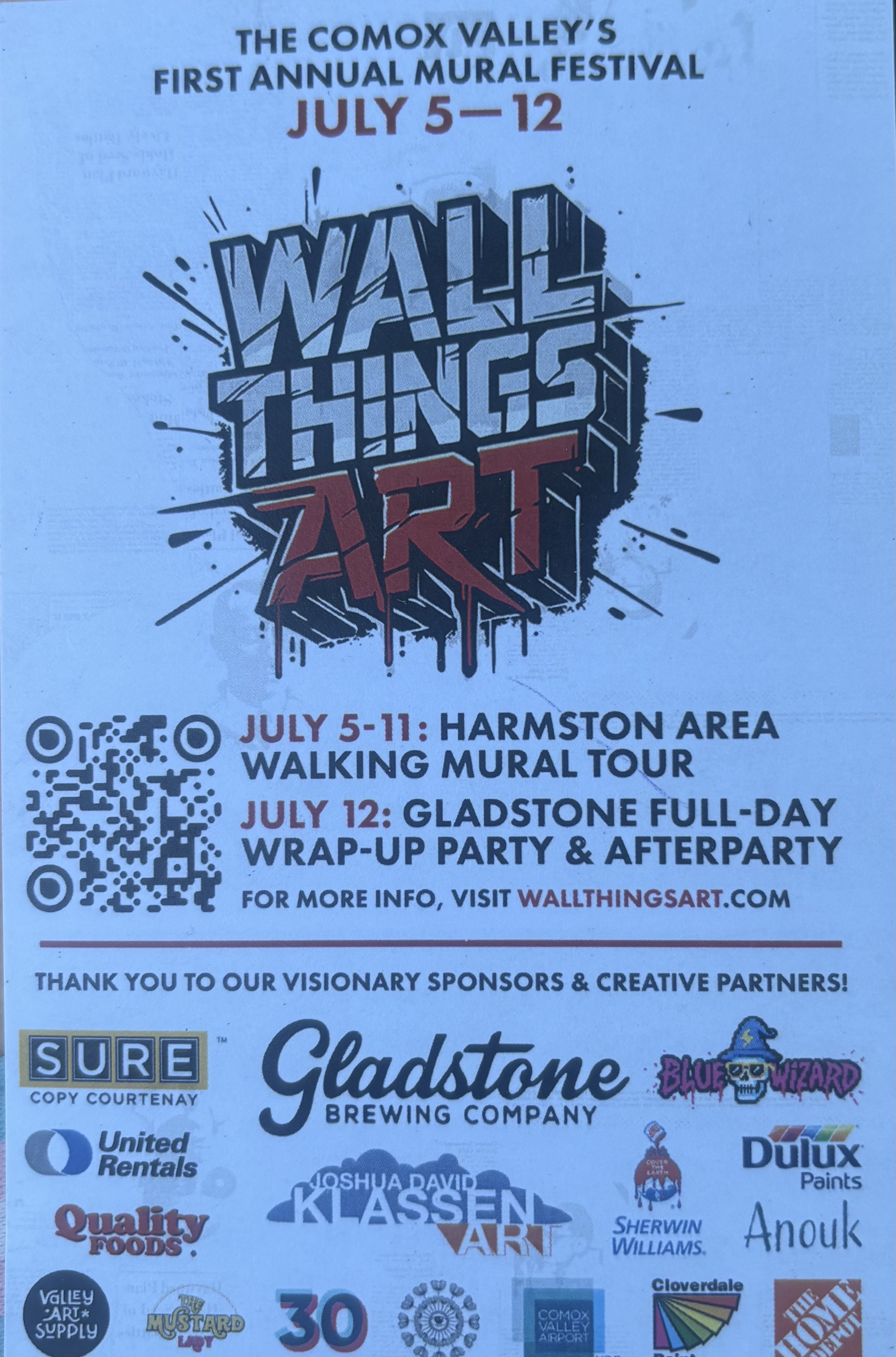 After my morning coffee, I started rendering photos I had taken for the Wall Things Art project—an incredible art collective happening in Courtenay from July 5th to 11th. This day marked the final celebration: the unveiling. But I had no idea what was in store. Let me just say: it turned out to be nothing short of a love letter to art, queerness, and the wild heart of this town.